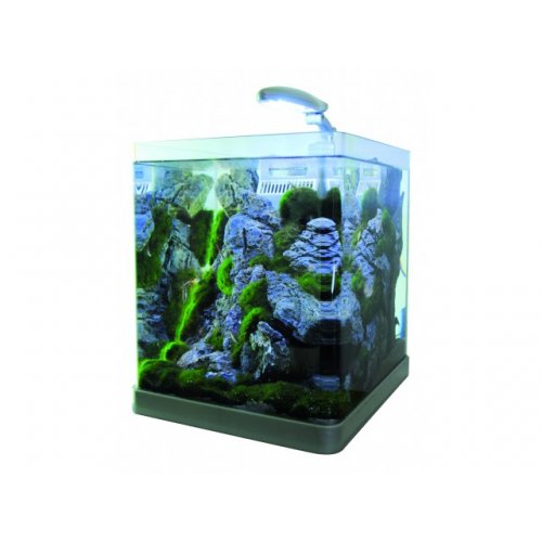 Aqua Nova 10 literes nano akvárium szett. Hajlított első sarkokkal, fekete vagy fehér talppal. Üveg fedlap, beépített biológiai és mechanikai belső szűrő 3,5 watt, 240l/óra teljesítménnyel. A szett tartalmazza a 2,5 watt LED világítást, melyek fehér és kék ledekkel világítják az akváriumot.